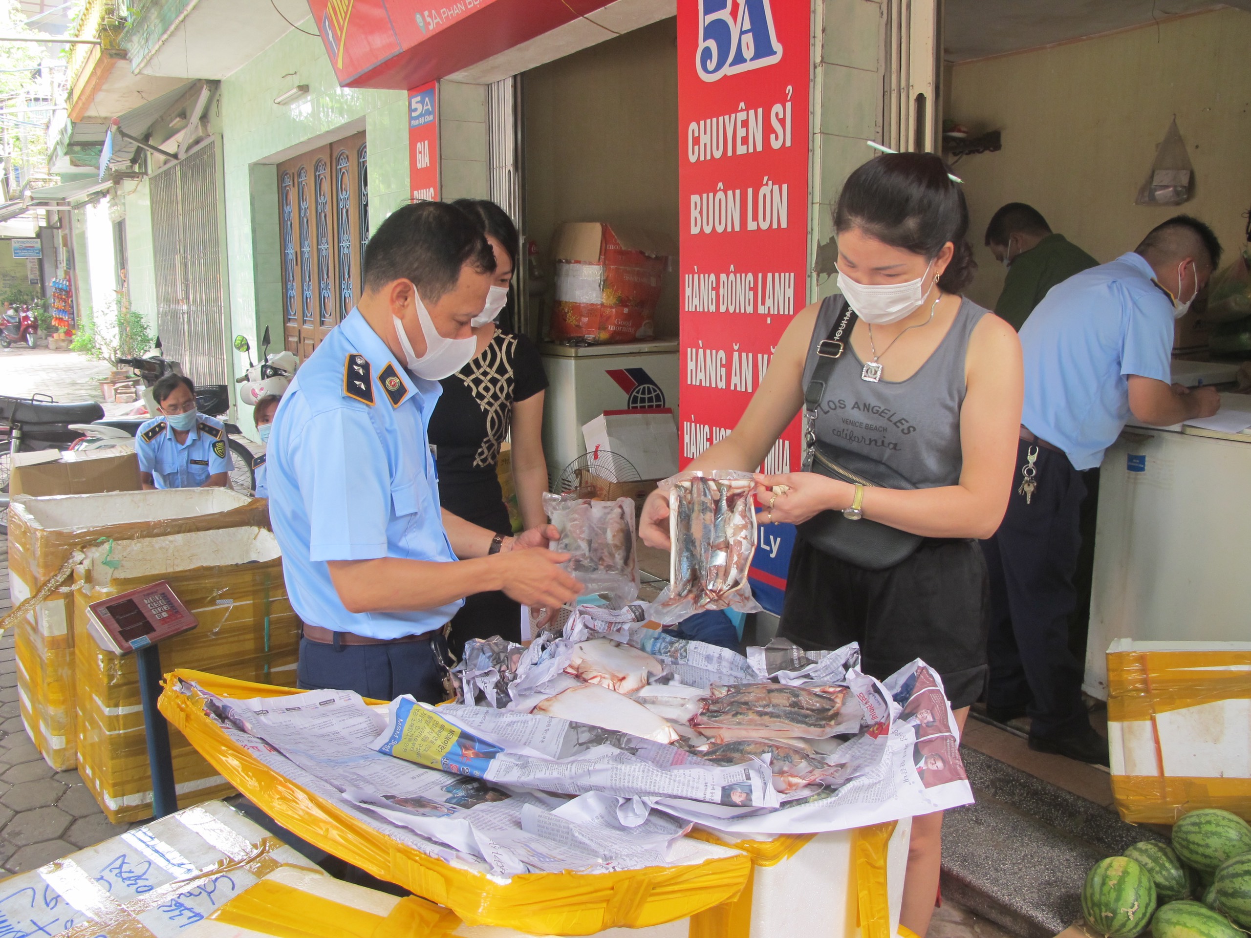 Hồi 10h ngày 26/7/2021 dưới sự chỉ đạo trực tiếp của đồng chí lãnh đạo Cục Quản lý thị trường tỉnh Nam Định, Đội Quản lý thị trường số 1 đã phối hợp với lực lượng Công an, Chi cục Quản lý chất lượng Nông lâm thủy sản tiến hành kiểm tra ngay cửa hàng kinh doanh thực phẩm tươi sống tại địa chỉ: Số 5A khu 4 tầng đường Phan Bội Châu. P. Trần Đăng Ninh, TP. Nam Định. Đoàn kiểm tra đã phát hiện gần nửa tấn thực phẩm tươi sống như: hải sản tươi sống, nội tạng gia cầm, nguyên liệu chế biến, ... không rõ nguồn gốc xuất xứ, không qua kiểm dịch đang để trên hè phố và trong kho của cửa hàng.