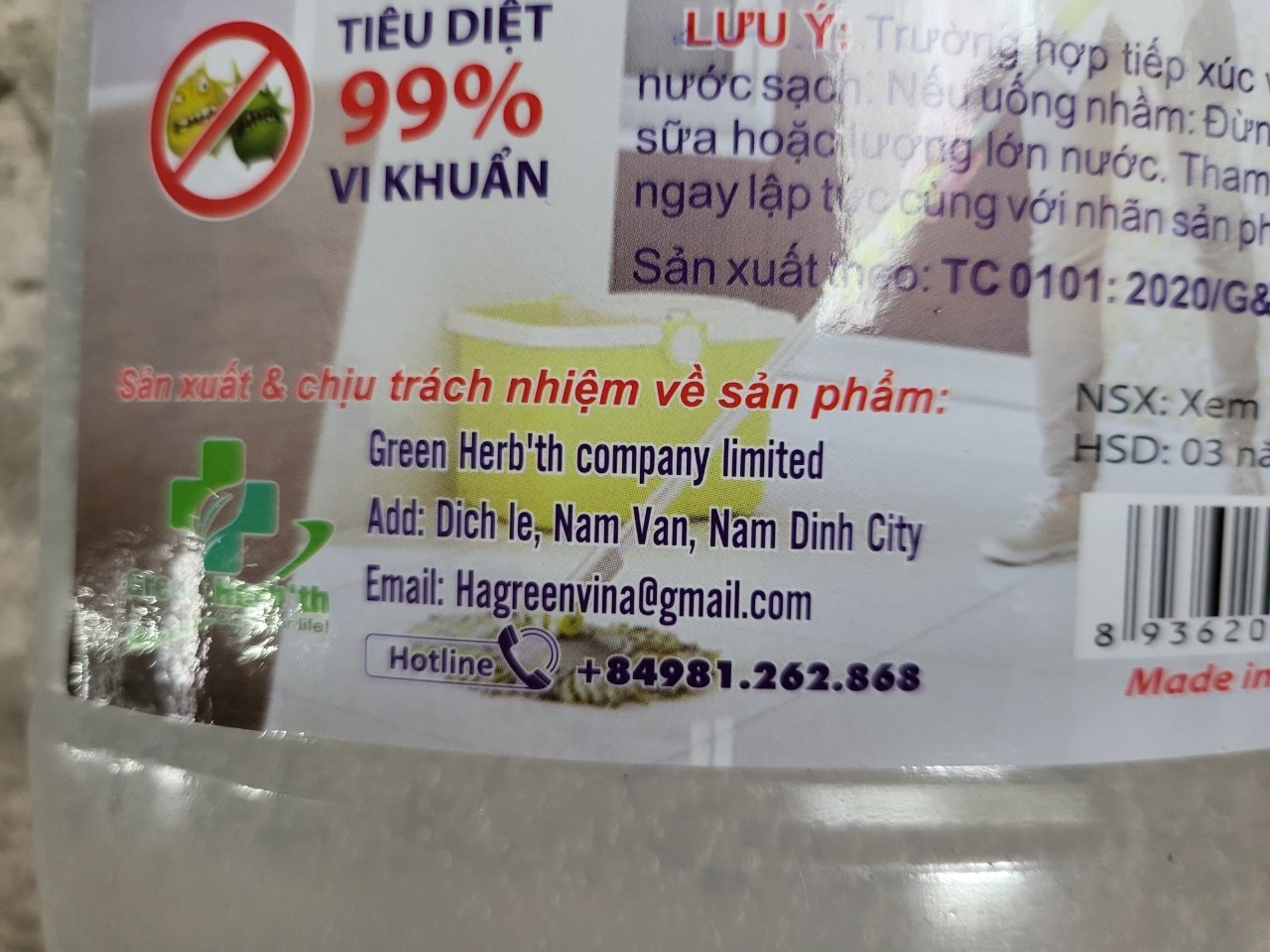 Trước đó, ngày 07/4/2022, Đội QLTT số 1, Cục Quản lý thị trường tỉnh Nam Định phối hợp với Đội 1- Phòng Cảnh sát điều tra tội phạm kinh tế, Công an tỉnh Nam Định tiến hành kiểm tra Công ty TNHH Green Herb'th, Địa chỉ: Thôn Địch Lễ, Xã Nam Vân, Thành phố Nam Định, Tỉnh Nam Định do ông Trần Văn Hà - làm Giám đốc. Qua kiểm tra, lực lượng chức năng đã phát hiện gần 4000 sản phẩm (gồm: chai xịt tác động đa côn trùng, chai xịt đặc trị ruồi, chai nước tẩy trắng, tẩy mốc OXO; nước rửa chén đậm đặc, chai nước tẩy toilet hữu cơ siêu sạch). Trên nhãn hàng hóa có nội dung thông tin thể hiện tên và địa chỉ của tổ chức, cá nhân chịu trách nhiệm về hàng hóa không được thể hiện bằng tiếng Việt theo quy định tại khoản 1, Điều 7, Nghị định số 43/2017/NĐ-CP được sửa đổi, bổ sung tại khoản 3, Điều 1, Nghị định số 111/2020/NĐ-CP, cụ thể trên nhãn hàng hóa ghi: “Green Herb’th company limited, Add: Dich Le, Nam Van, Nam Dinh City” đã vi phạm quy định tại Điểm b, Khoản 1, Điều 30 Nghị định 119/2017/NĐ-CP của Chính phủ, được sửa đổi, bổ sung tại Nghị định 126/2021/NĐ-CP ngày 30/12/2021 của Chính phủ. Trị giá hàng hóa vi phạm là gần 60 triệu đồng.