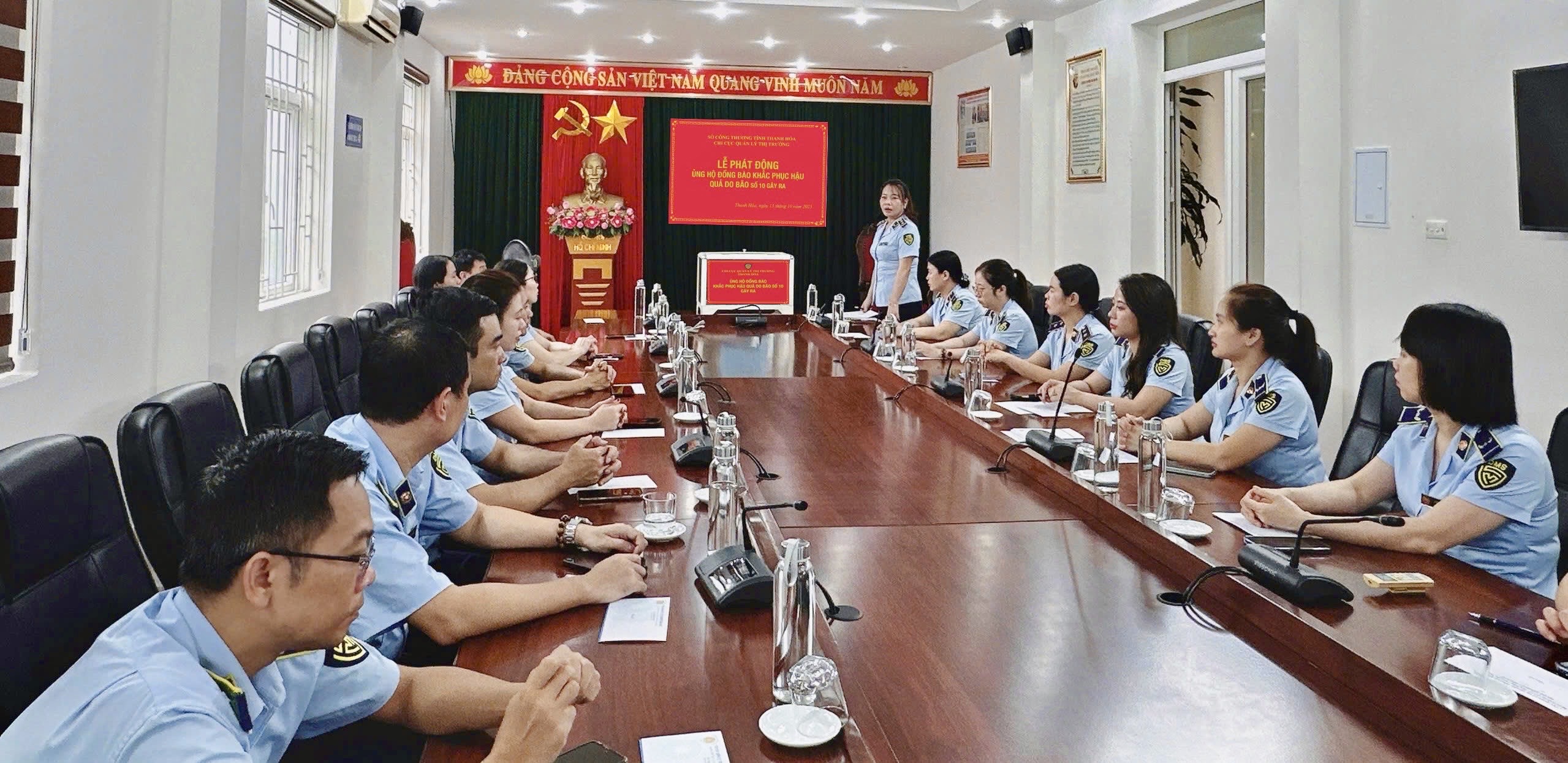 Hưởng ứng lời kêu gọi của Ban Thường trực Ủy ban Mặt trận Tổ quốc Việt Nam tỉnh Thanh Hóa tại Công văn số 515/MTTQ-BTT ngày 06/10/2025 và Công văn số 3366/SCT-VP ngày 08/10/2025 của Sở Công Thương về việc ủng hộ đồng bào bị thiệt hại do cơn bão số 10 gây ra, Chi cục Quản lý thị trường (QLTT) Thanh Hóa đã ban hành Công văn số 526/CCQLTT-HCTH ngày 10/10/2025, triển khai vận động toàn thể công chức tại các phòng chuyên môn, nghiệp vụ và các Đội QLTT trực thuộc đóng góp, ủng hộ đồng bào bị thiệt hại do bão, lũ.
