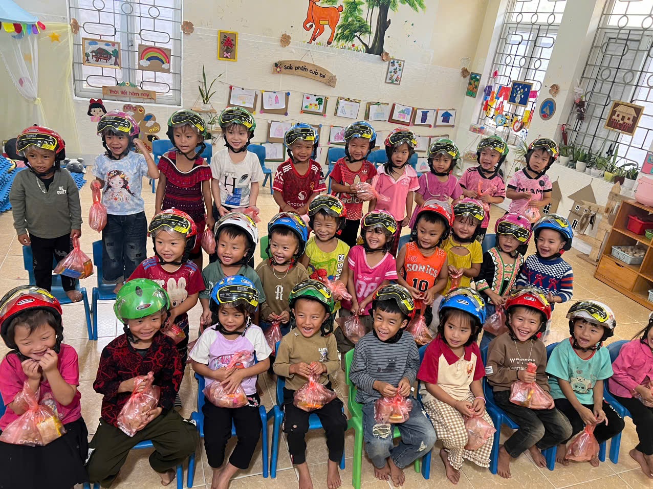 Lai Châu: Tặng mũ bảo hiểm và nhu yếu phẩm cho học sinh