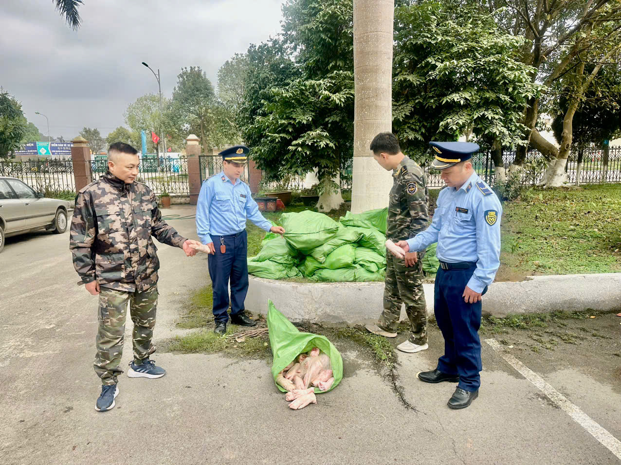 Thực kiện ý kiến chỉ đạo của Chi cục trưởng Chi cục Quản lý thị trường và Trưởng ban chỉ đạo 389 huyện Lộc Bình về tăng cường công tác nắm tình hình địa bàn, phối hợp kiểm tra hàng hóa là thực phẩm đông lạnh xuất lậu qua các mốc biên giới của khẩu.